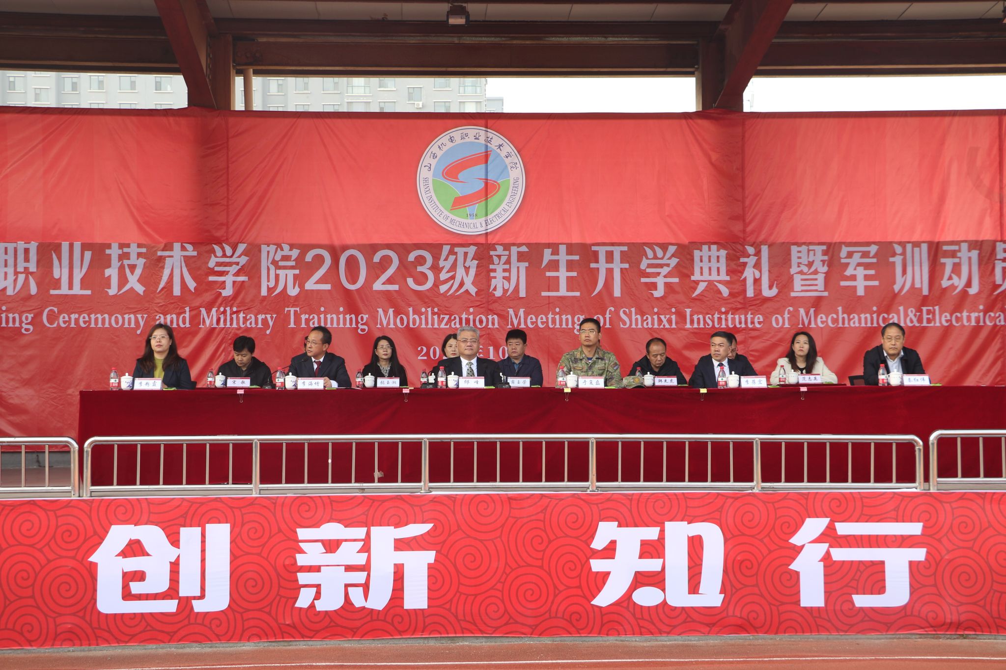 党委副书记、院长宋志平在会上致辞,他代表学院全体教职员工对新生到来表示热烈的欢迎,向新生介绍了我院办学历史和人才培养情况。他讲到,几代山西机电人同舟共济、薪火相传,学院实现了从国家级重点中专到国家“双高”院校的跨越发展,培养了为“导弹‘雕刻’翅膀”的大国工匠曹彦生、“数控微雕为国保驾护航”的大国工匠常晓飞等优秀毕业生,希望各位新生能以他们为楷模和榜样,坚定理想信念,厚植爱国情怀;勇于奋斗拼搏,磨炼坚强品格;注重全面发展,成就卓越人生。他指出,军训是大学教育的必修课,也是同学们进入大学后的第一课,希望同学们能学习到部队官兵不怕艰苦、服从指挥、认真训练、挑战自我的良好品质,学习到“听党指挥、能打胜仗、作风优良”的良好作风,为大学生活奠定基础,为出彩人生积蓄能量。