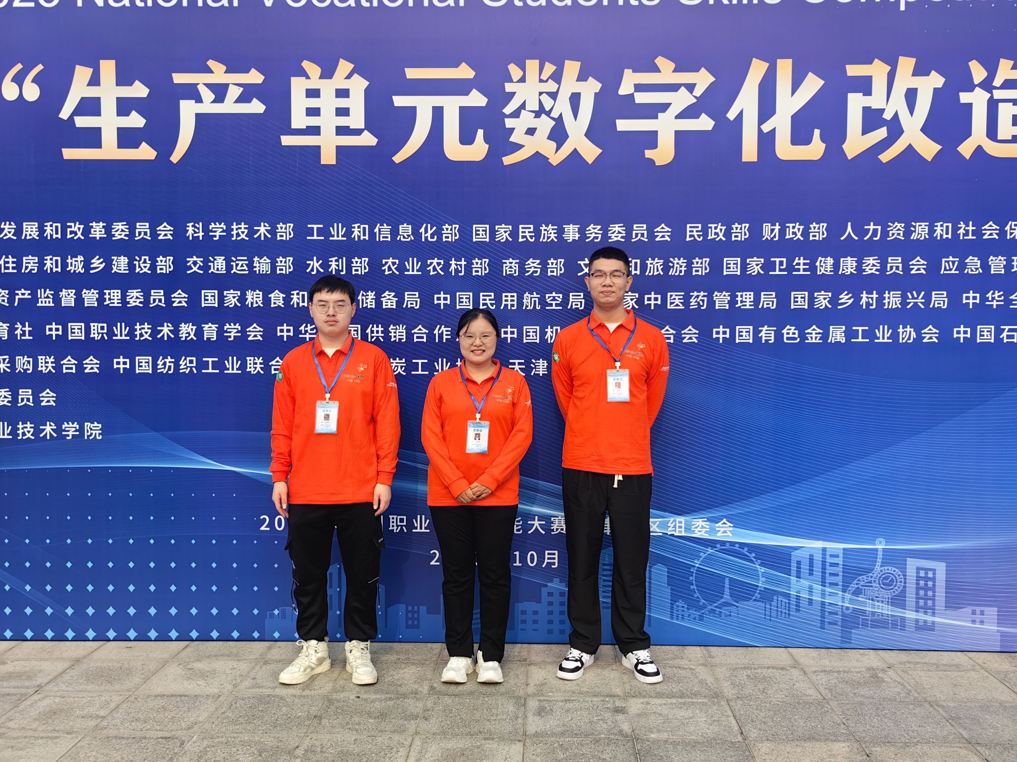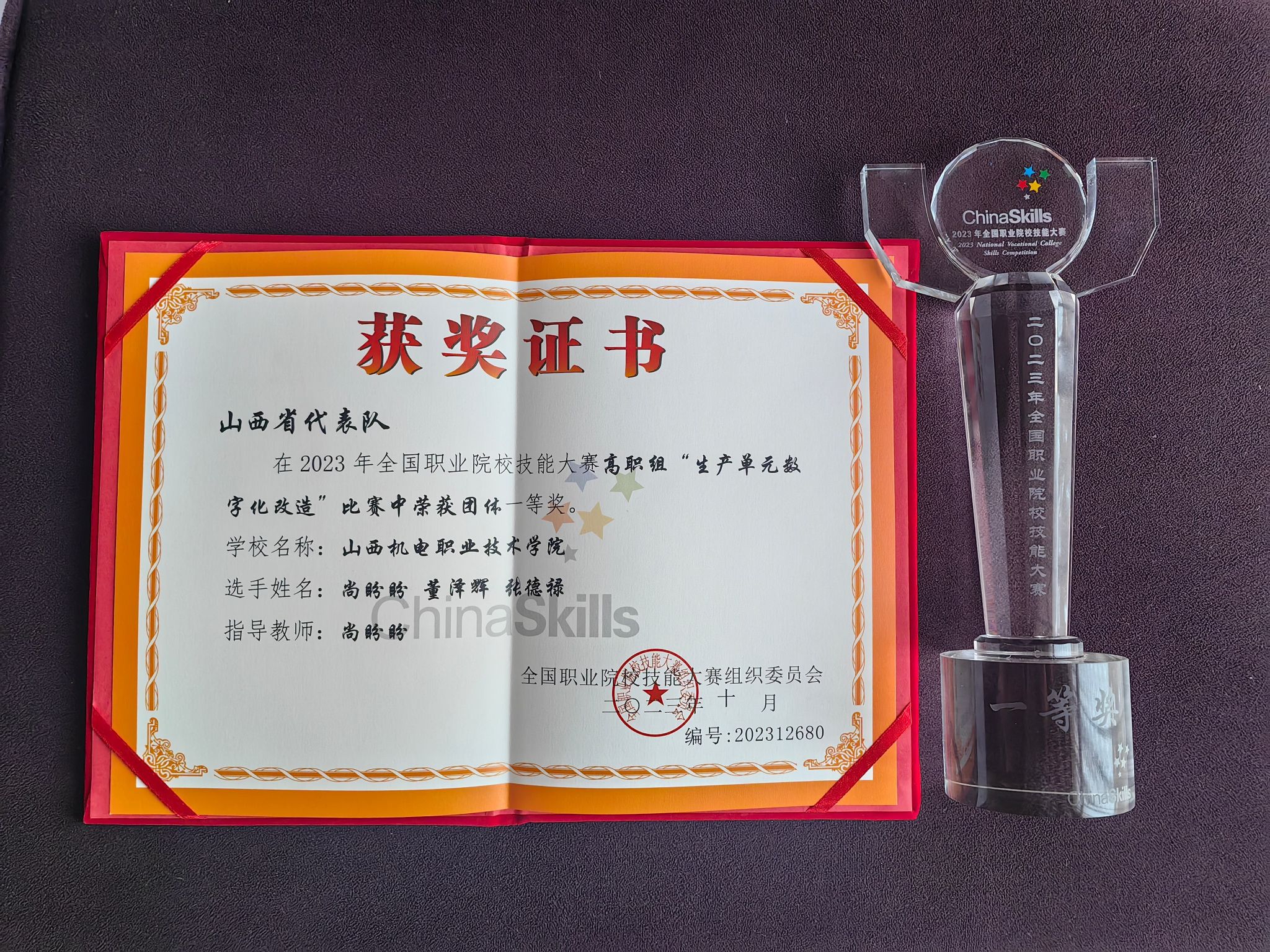 在刚刚结束的2023年全国职业院校技能大赛高职组“生产单元数字化改造”赛项中,我院代表队数控工程系教师尚盼盼、数控工程系学生机器人2108班董泽辉、张德禄三人荣获团体一等奖!这也是学院师生在“生产单元数字化改造”赛项中荣获的最高奖项。