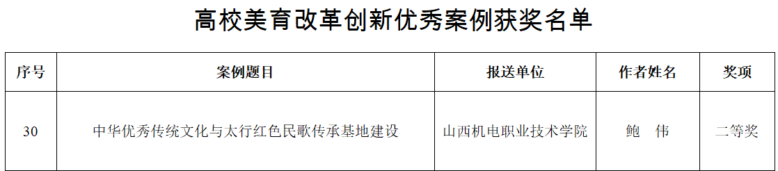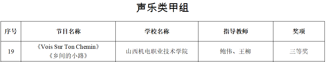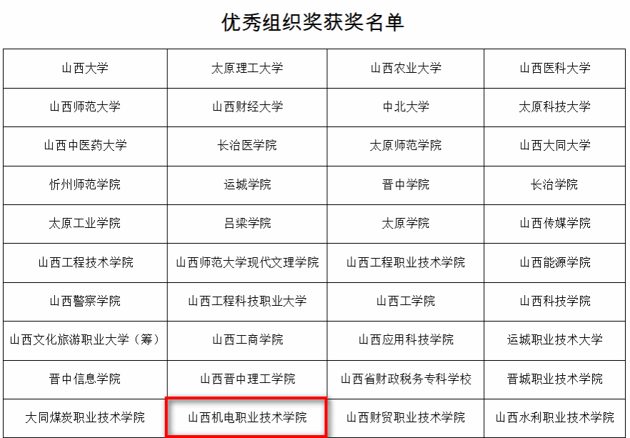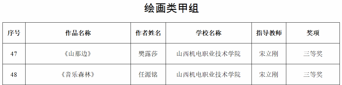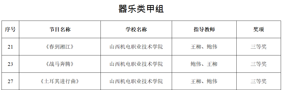12月18日,山西省教育厅公布了全省第七届大学生艺术展演活动评审结果,我院在本次展演活动中喜获佳绩,共有7项作品获奖,其中二等奖1项,三等奖6项,山西机电职业技术学院获优秀组织奖。