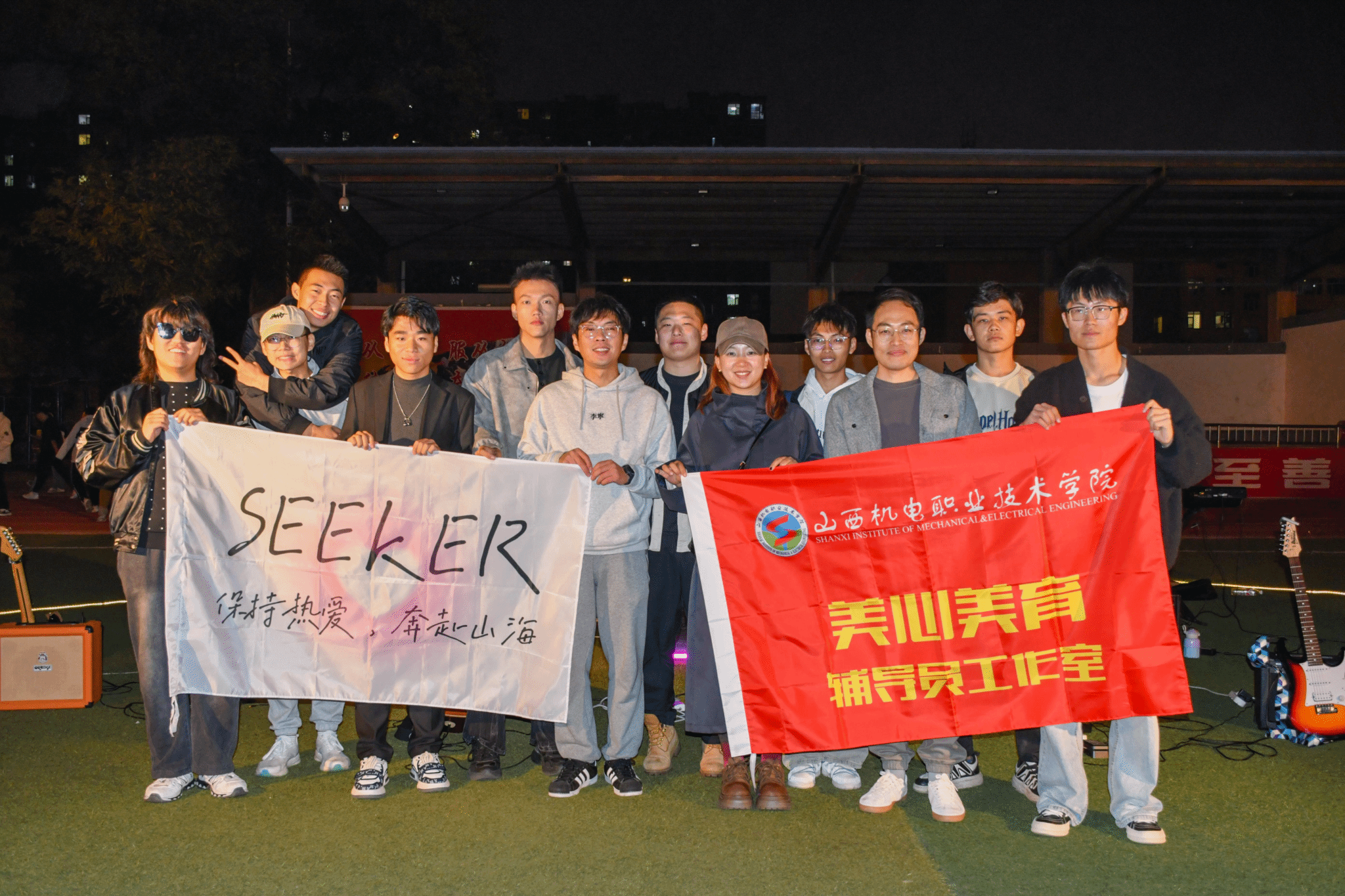 活动现场,由学院辅导员团队组成的SEEKER BAND乐队以其精湛的技艺和独特的音乐风格,成为了全场的焦点。他们的演出涵盖了经典与原创,既有对过往岁月的深情回望,也有对青春梦想的激情展望,赢得了现场观众的阵阵掌声与欢呼。