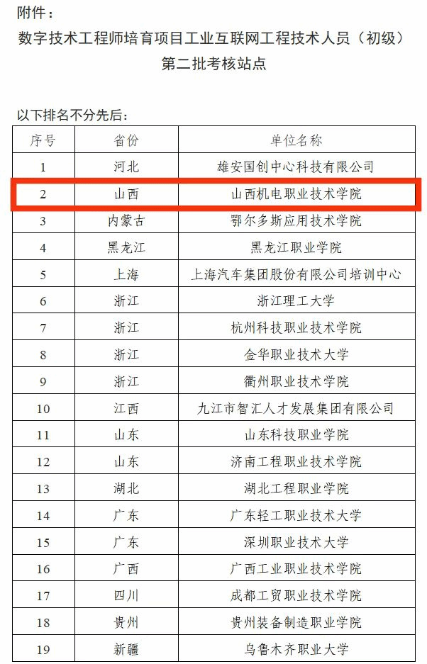 5月6日,中国工业互联网研究院公布了数字技术工程师培育项目工业互联网工程技术人员(初级)第二批考核站点,经前期申报、资格审核、专家评审,我院在此次考核站点遴选中取得突破性进展,成为数字技术工程师培育项目工业互联网工程技术人员(初级)第二批考核站点。