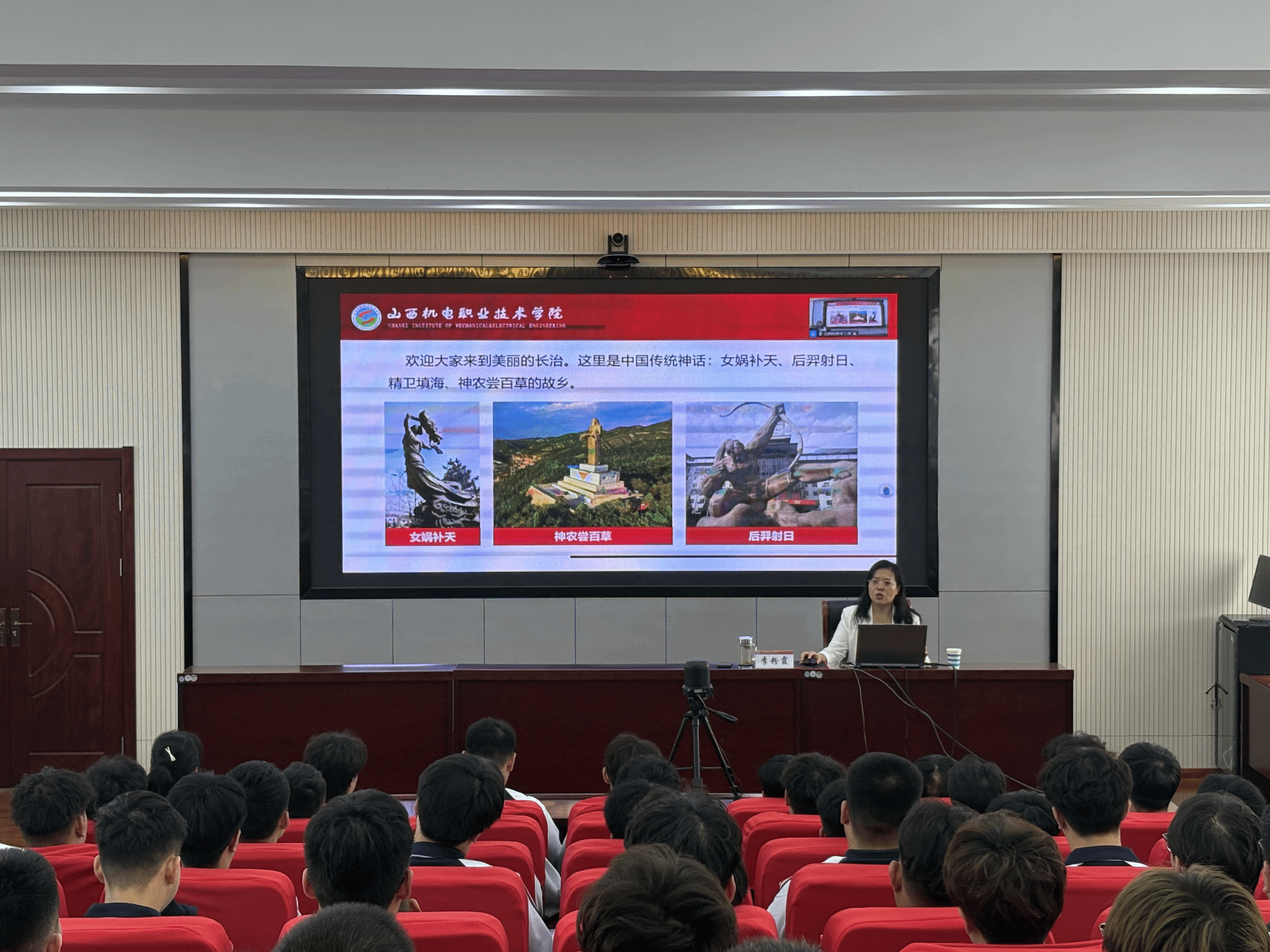 随后,李粉霞以“认识脚下的土地”为切入点,生动讲述了长治深厚的历史文化底蕴。她讲到,长治作为太行精神的重要发源地,素有“上党从来天下脊”之美誉,不仅文化遗产丰富,被誉为“神话之乡”,更是一片记载着抗日战争时期八路军将士浴血奋战英勇事迹的红色土地。“这片土地孕育了‘艰苦奋斗、无私奉献’的精神基因。”李粉霞的讲解,使新生对求学之地有了更加深刻的认识,进一步增强了同学们对地方文化的认同感和自豪感。