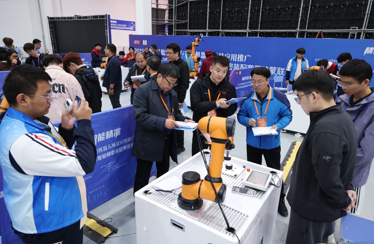 10月12日,2025年襄垣县低空飞行与智能机器人场景应用推广暨中国大学生机械工程创新创意大赛智能精密装配赛晋陕蒙联赛圆满落下帷幕。本次联赛以“精密巧思·智能精准”为主题,由山西机电职业技术学院和山西省襄垣县人民政府主办,太原科技大学、内蒙古工业大学、西安建筑科技大学、遨博(北京)智能科技股份有限公司协办。联赛指导单位为中国机械工程学会。