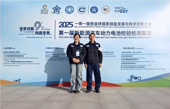 本次大赛聚焦新能源汽车产业前沿技术需求,旨在通过国际化的技能竞赛平台,推动高素质技术技能人才队伍建设,为行业创新发展提供人才支撑。比赛中,我院两位教师沉着应战,展现出深厚的专业素养和精湛的技术水平。在动力电池性能检测、安全测试、充电安全检测三个任务中,他们操作精准规范,配合默契高效,充分体现了我院教师扎实的技术功底和良好的职业风貌。
