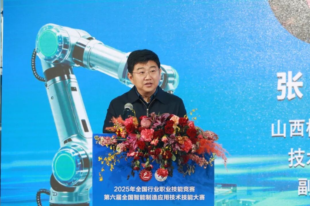 李奇在会上讲话,他表示,本次大赛技术交流暨高技能人才招聘对接会旨在贯彻落实国家关于加强高技能人才队伍建设的决策部署,搭建地方政府、行业、企业与高技能人才之间的沟通桥梁,意义重大而深远。他强调,智能制造是制造业高质量发展的主攻方向,高技能人才是其核心支撑。第六届全国智能制造应用技术技能大赛作为国家级一类竞赛,其重要意义不仅在于选拔优秀选手,更在于将竞赛中涌现的先进技术、创新方法和优秀人才,精准对接产业发展需求,实现从“赛场领先”到“产线应用”的转化,从“技能比拼”到“人才赋能”的升级。