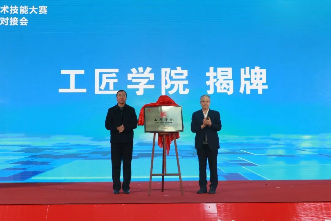 会议现场,焊接设备装配调试工(机器人焊接技术方向)赛项专家组长徐敏教授与机床装调维修工(智能化再制造技术方向)赛项副裁判长李春光分别结合比赛实况,对选手表现、技术应用与行业趋势进行了深入剖析与总结,为参赛师生提供了宝贵的专业指引。随后,在与会嘉宾的共同见证下,曲剑午与宋志平共同为“工匠学院”揭牌。
