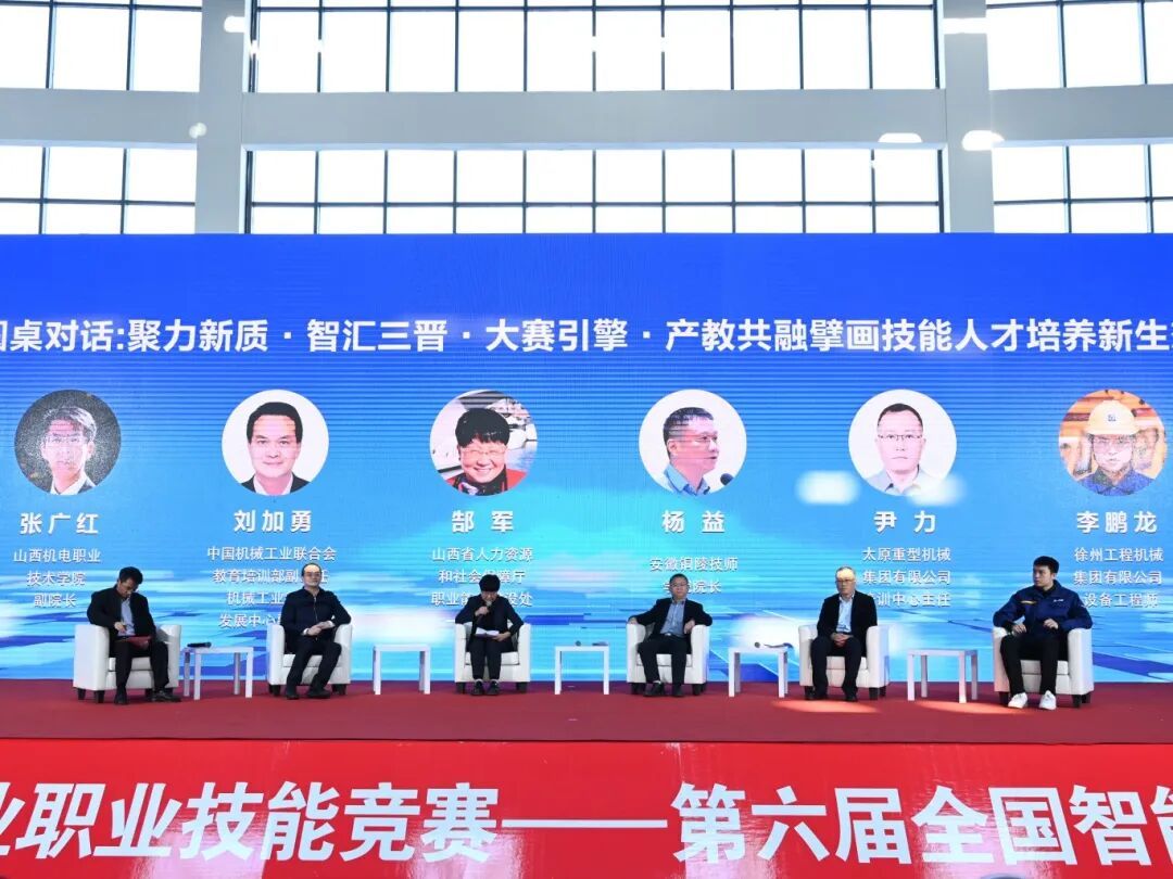 会上举行了以“聚力新质·智汇三晋·大赛引擎·产教共融——擘画技能人才培养新生态”为主题的圆桌会议。会议由山西机电职业技术学院党委委员、副院长张广红主持。会上,刘加勇作《匠心逐梦,智造未来,以卓越人才引领机械工业“十五五”跃升》的专题分享,提出产才融合、协同育人的四维路径,强调要构建“产业牵引人才、人才驱动产业”的良性循环。郜军作《以政策红利聚人才,以技能高地强智造,赋能山西智能制造产业升级》分享,为利用政策吸引人才、推动产业升级提供了实践思路。安徽铜陵技师学院院长杨益以《科技赋能 产教深耕 技工院校锻造新质生产力工匠的铜陵实践》为题,通过“8321”培养模式案例,分享了产教融合的可行路径。太原重型机械集团有限公司培训中心主任尹力在《向新而行,以质致远,“新质”工匠培养与实战》报告中,用一线案例阐释了“新质”工匠的培养逻辑。大赛选手代表、徐州工程机械集团有限公司设备工程师李鹏龙结合参赛经历,作了《从金牌选手到技能工匠:传承赛事精神,铸就大国重器》的分享,讲述了如何将大赛精神转化为日常的工匠坚守。