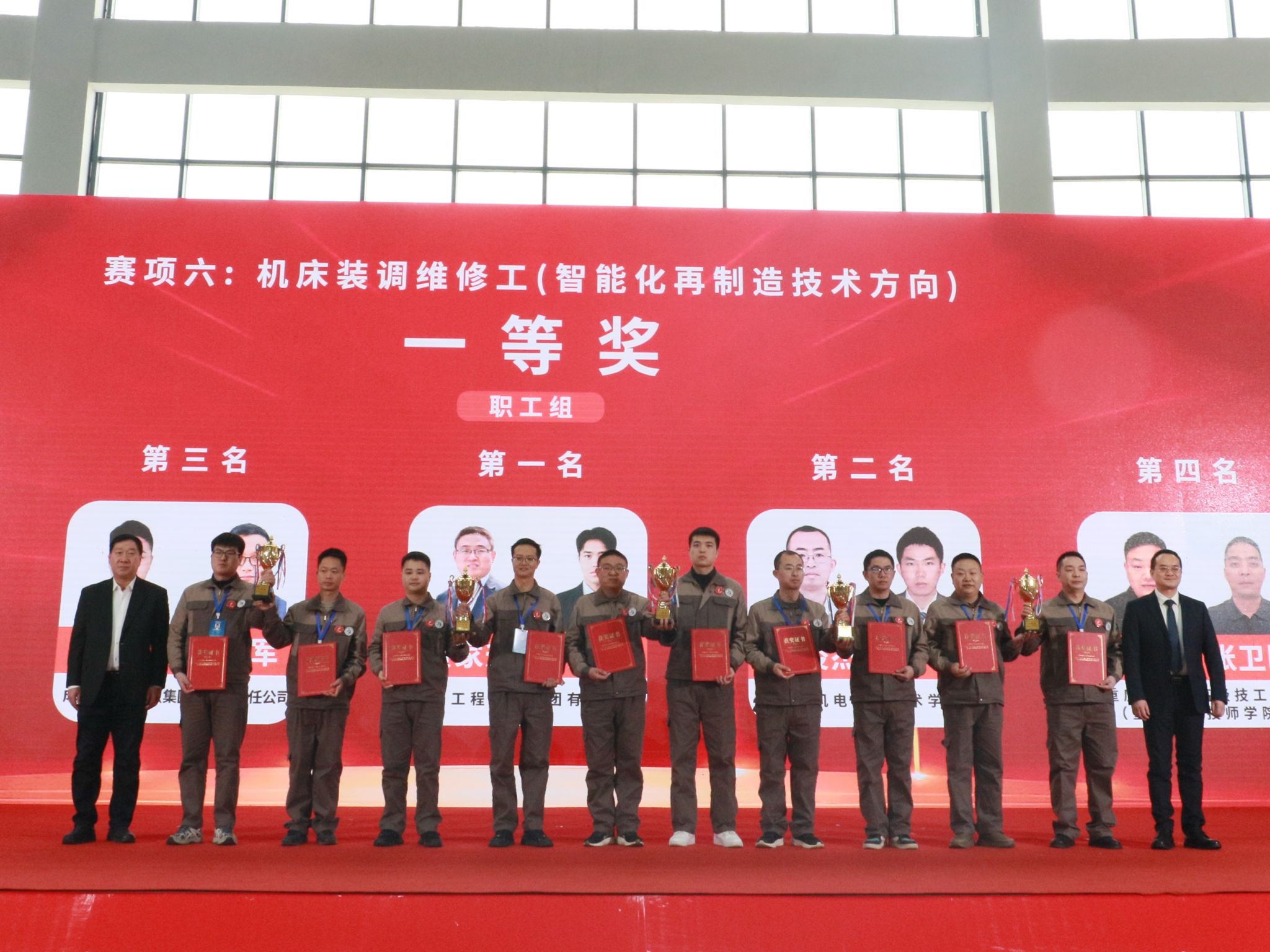 第六届全国智能制造应用技术技能大赛山西赛区决赛,共有来自22个省级代表队的308名参赛选手参与赛项角逐,最终,张江涛、韩金利等40名选手获得一等奖;杨学辉、王嘉亮等76名选手获得二等奖;马益东、梁贺斌等40名选手获得三等奖。与会领导在现场分别为获奖选手、优秀教练、冠军选手单位、优秀组织单位、优秀合作企业及突出贡献单位等获奖代表颁发了荣誉证书与奖牌。根据大赛奖励办法,各赛项职工组获得第1名参赛队的主选手且符合条件的,可在次年按程序申报“全国五一劳动奖章”。