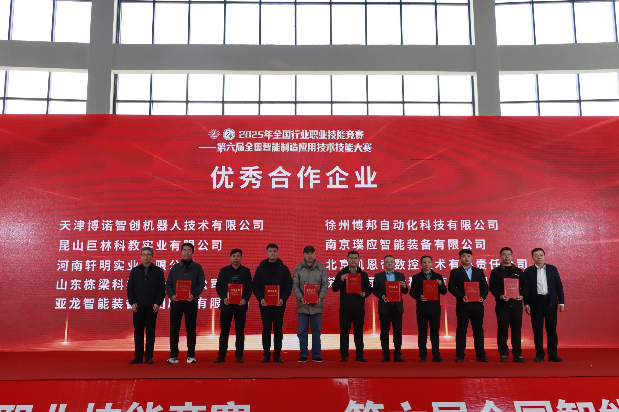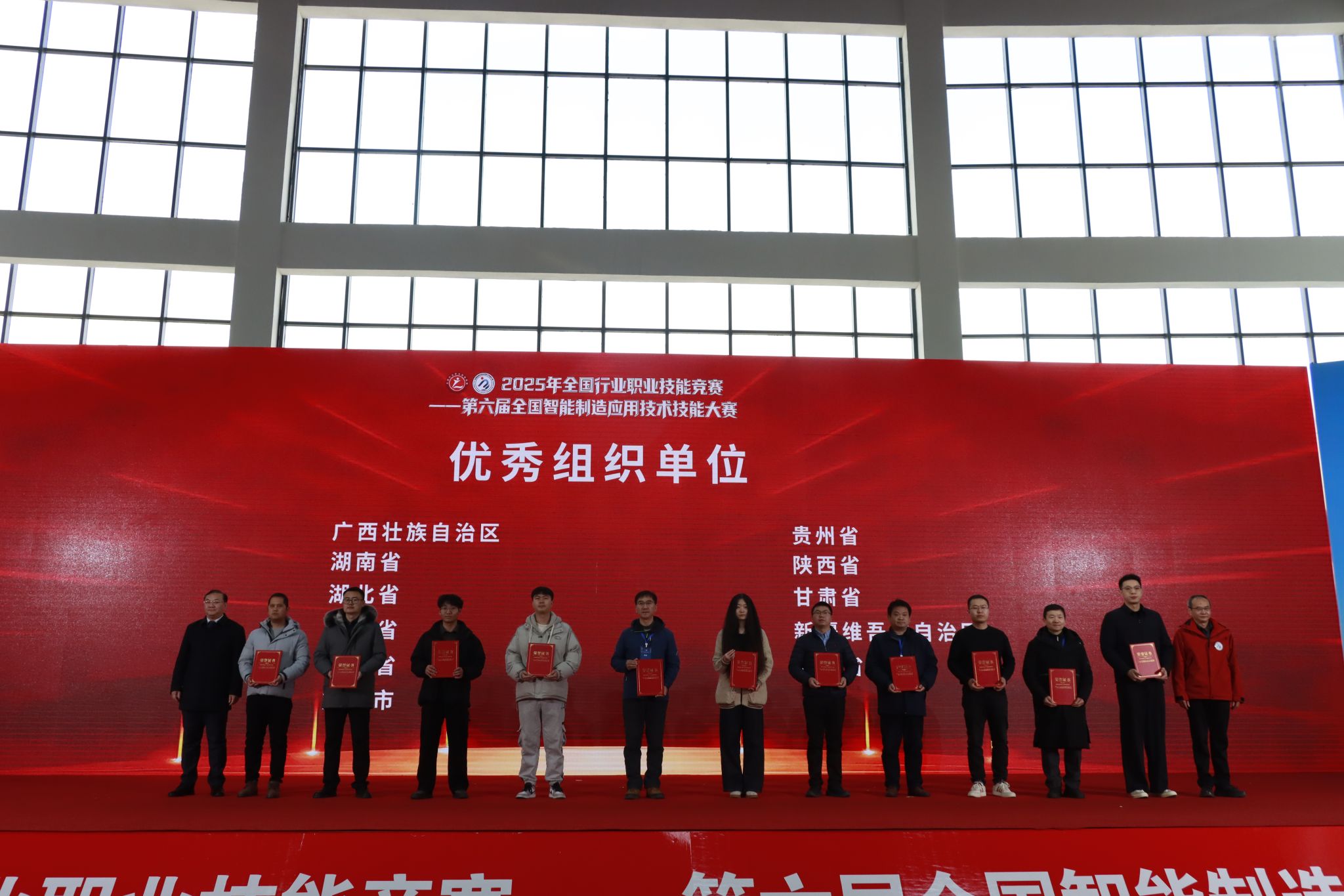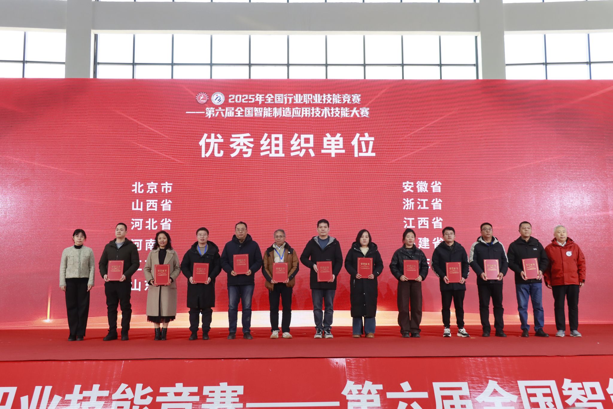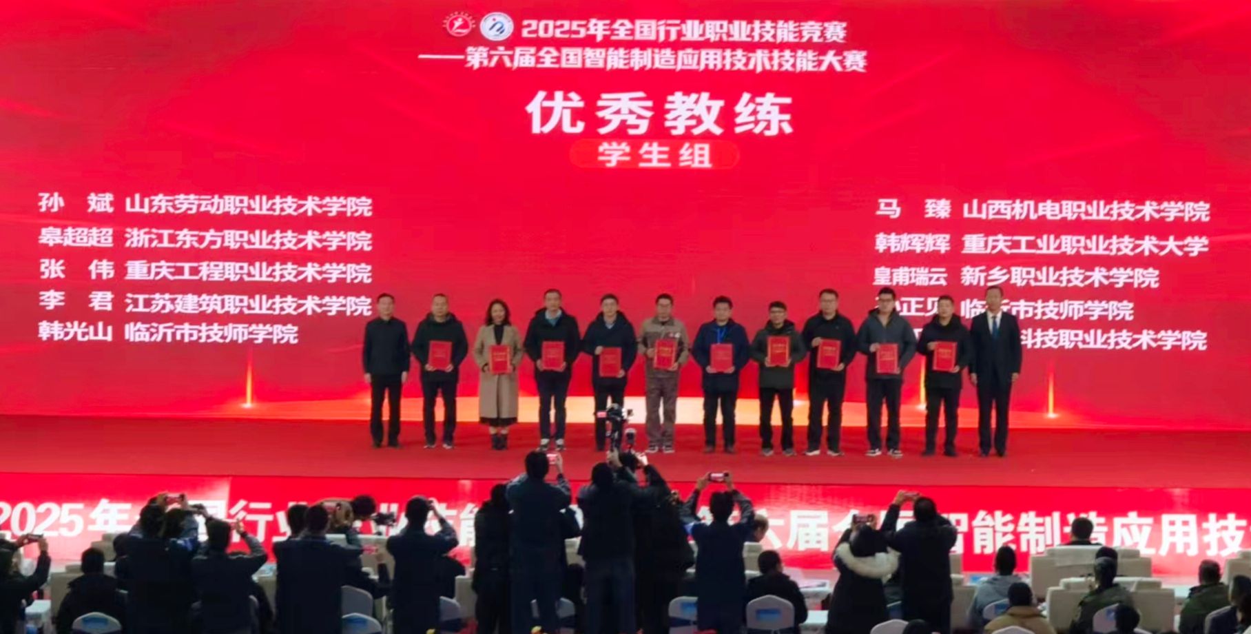 12月26日下午,2025年全国行业职业技能竞赛——第六届全国智能制造应用技术技能大赛山西赛区决赛闭幕式在我院东湖校区举行。中国机械工业联合会党委常委、副会长李奇,中国机械冶金建材工会主席李睿祎、冶金工作部部长王欣、机械工作部二级调研员张鲁玉,机械工业教育发展中心主任郑丽梅、副主任刘加勇,中国机电装备维修与改造技术协会秘书长李英勋,山西省总工会一级巡视员、山西省机械冶金建材工会联合会主席曲剑午,山西省人力资源和社会保障厅职业能力建设处一级调研员郜军,山西省教育厅二级巡视员徐岩章,长治市人大常委会副主任、市总工会主席于川,长治市政协副主席、市工商联主席赵文栋,襄垣县委副书记、县长段联刚,山西机电职业技术学院党委书记宋志平等有关领导及嘉宾出席闭幕式。参赛选手、专家、裁判、领队、教练、合作企业代表及媒体记者等共500余人参加闭幕式。