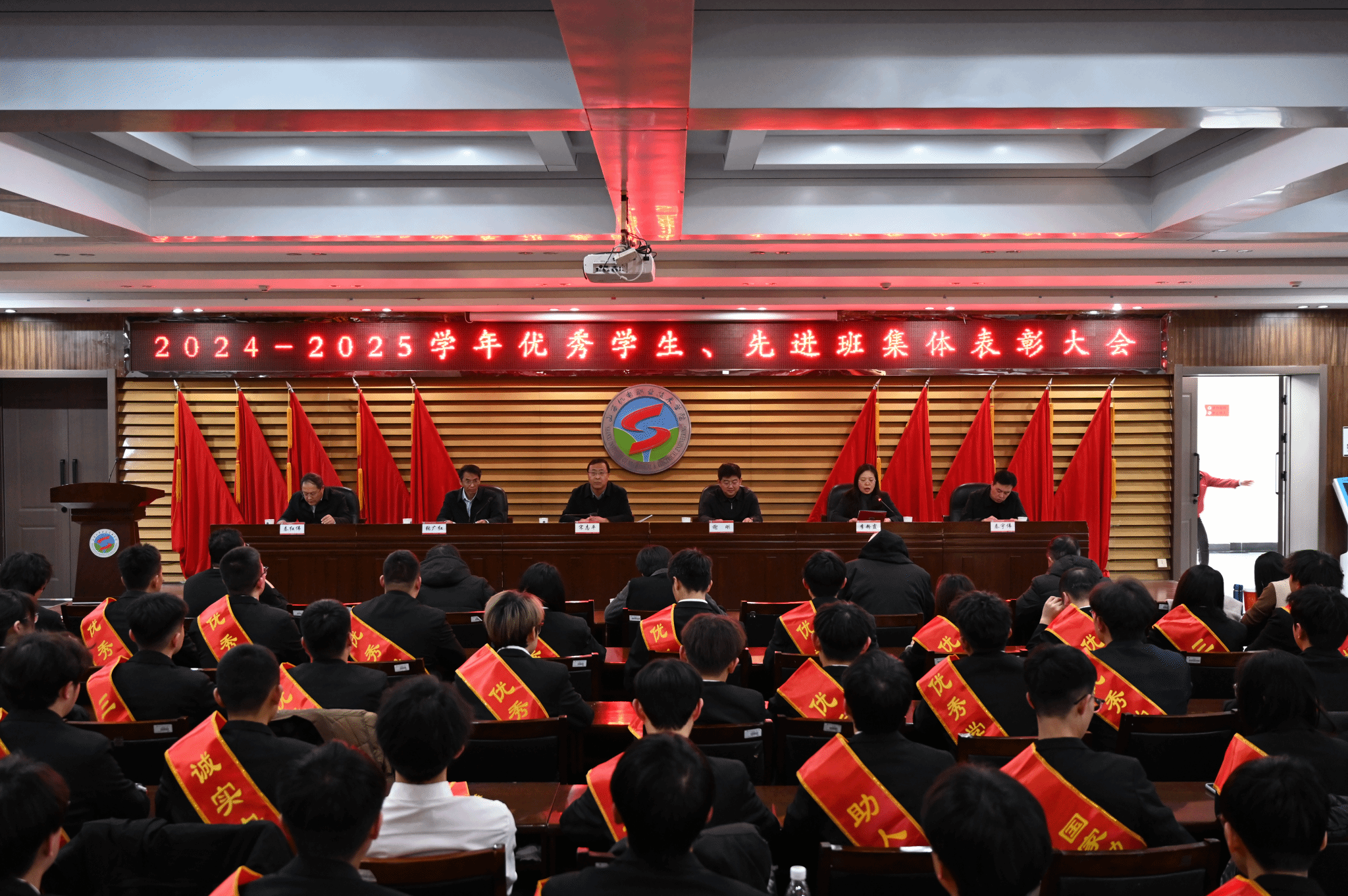 伴随着庄严的国歌声,表彰大会正式拉开帷幕。党委委员、副院长张广红宣读《2024-2025学年优秀学生、先进班集体表彰决定》,对在过去一学年中表现突出的优秀个人和先进集体予以表彰。随后,颁奖仪式有序进行,与会领导为获奖学生和先进集体代表颁发荣誉证书。