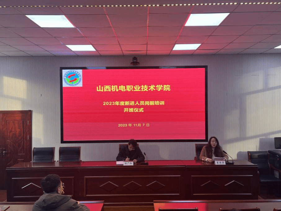 为提升我院2023年度入职人员的工作能力,尽快帮助新入职教职工实现角色转变,我院于近期开展2023年度新进人员院级岗前培训,11月7日,2023年度新进人员岗前培训开班仪式在知行报告厅举行,学院党委委员、副院长张广红,人事部部长董海涛,2023年度学院入职人员、见习岗人员参加。开班仪式由董海涛主持。