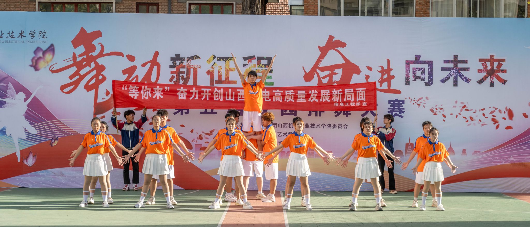校园排舞不仅是体育与艺术的融合,更是同学们展现青春正能量的平台,我院自2020年引入排舞项目以来,积极响应“阳光体育”号召,丰富学生课余生活,培养团队协作精神,推动校园文化多元化。通过排舞普及与提升,打造特色体育品牌,促进学生身心健康与综合素质发展。学院“阳光排舞进校园”项目入选2024年度山西省职业教育铸魂育人计划项目,我院也被授予全国“2023年度阳光排舞四星级特色学校”。