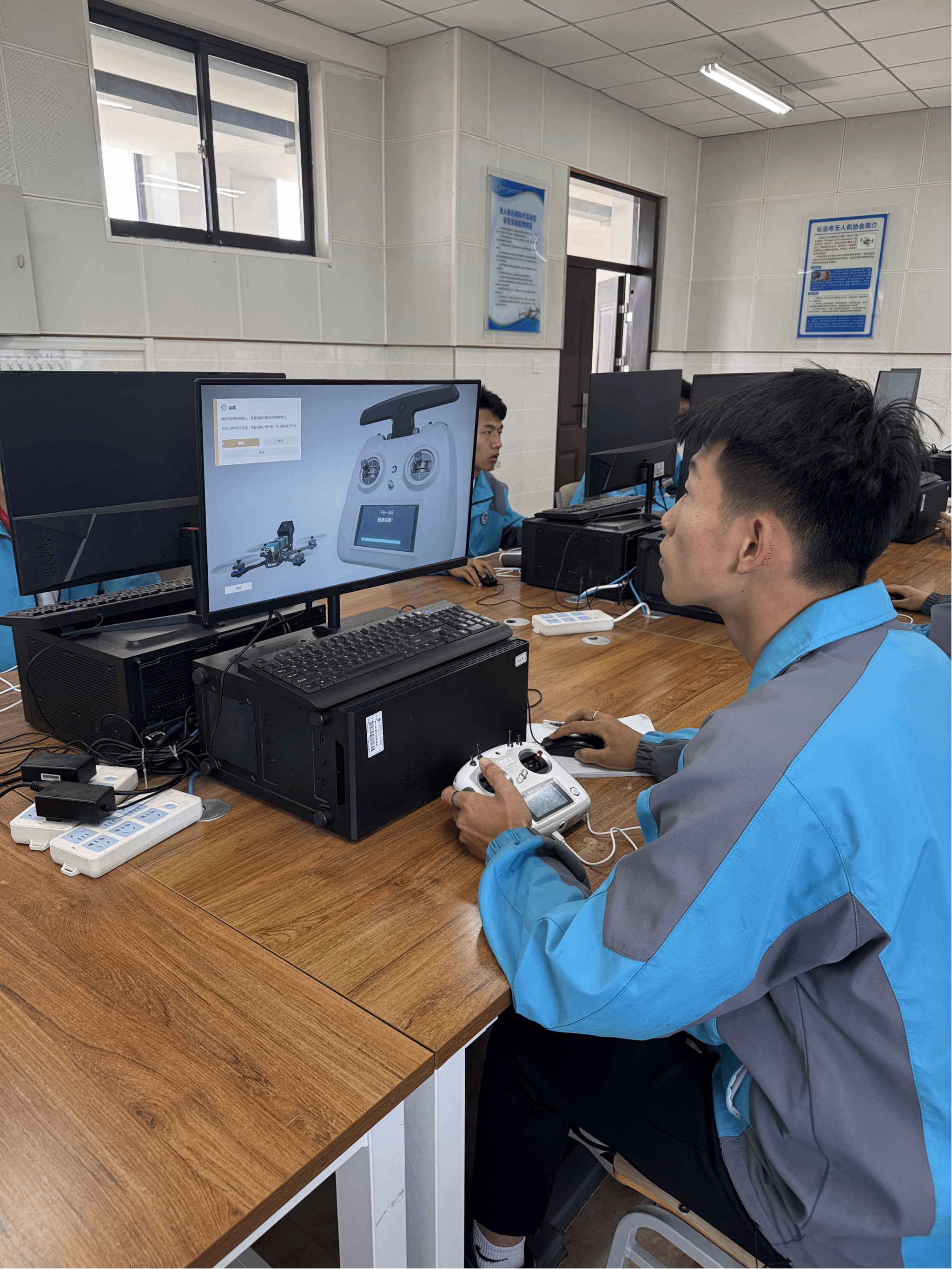 本次活动以专业理论赋能实践体验,形式多样,内容丰富,让大众近距离观摩和接触无人机驾驶技术。活动共分为“无人机驾驶知识讲座”“无人机模拟飞行体验”“fpv无人机驾驶体验”“无人机自主任务体验”“无人机行业应用体验”五大模块,搭建了完整的职业体验链条。专业教师围绕多旋翼无人机的应用场景展开深度讲解,系统阐述了无人机从“飞行控制”到“智能决策”的技术演进路径。学生们佩戴fpv眼睛,通过无人机模拟操作系统,首次体验了航拍构图、障碍跨越、定点降落等实操项目。实飞环节中,学生们分组操作设备,完成精准投放、地形测绘等任务,揭开无人机多领域应用的技术密码,亲身体验和感受科技如何重塑传统职业形态。
