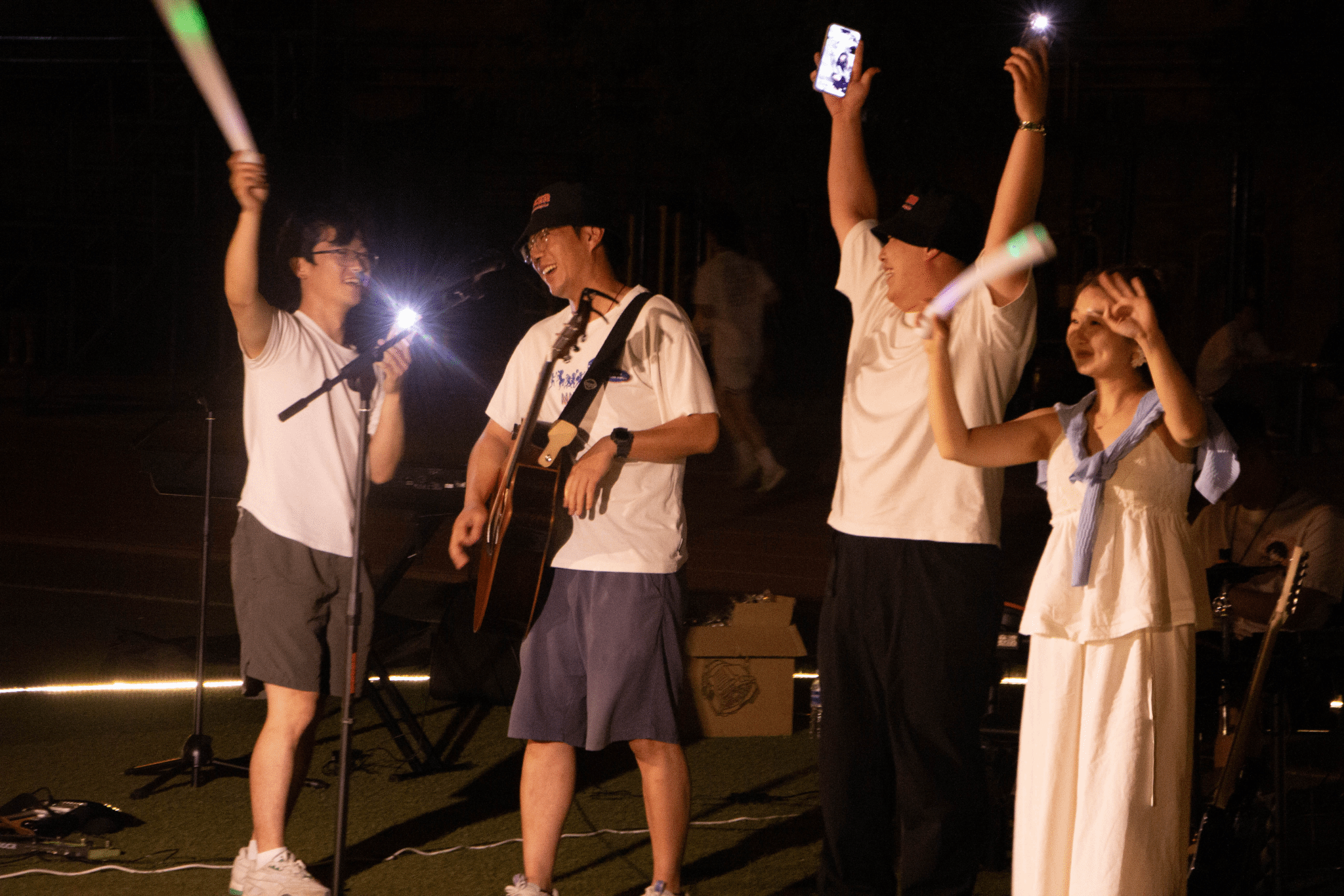 本次音乐节由我院Seeker师生乐团担纲演出,精心编排的13个节目充分展现了当代大学生的艺术才华。演出以陶喆经典作品《小镇姑娘》开场,轻快的节奏与复古的蓝调曲风瞬间点燃了现场气氛。观众席上,此起彼伏的掌声与随节奏舞动的闪光灯交相辉映,将夏夜的操场装点成一片璀璨的星河。