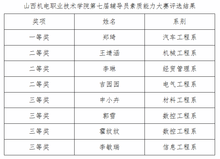 经过多轮激烈角逐,大赛最终根据选手综合成绩评选出一等奖1名、二等奖3名、三等奖4名。