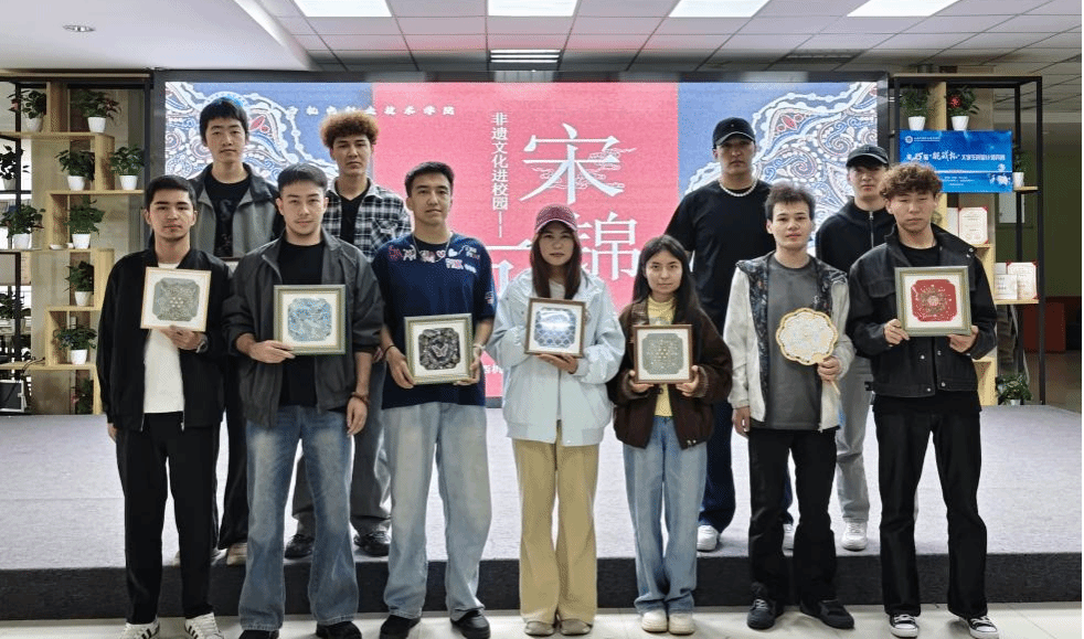 为推动中华优秀传统文化活态传承,让各民族青年在非遗体验中增进文化认同、凝聚青春共识,4月14日下午,院团委在主校区苔米匠-综合双创实践基地组织新疆籍学生开展“非遗文化进校园——宋锦画”体验主题活动,以千年宋锦为纽带,让非遗之美浸润青春心灵,让民族团结之花在校园绽放。