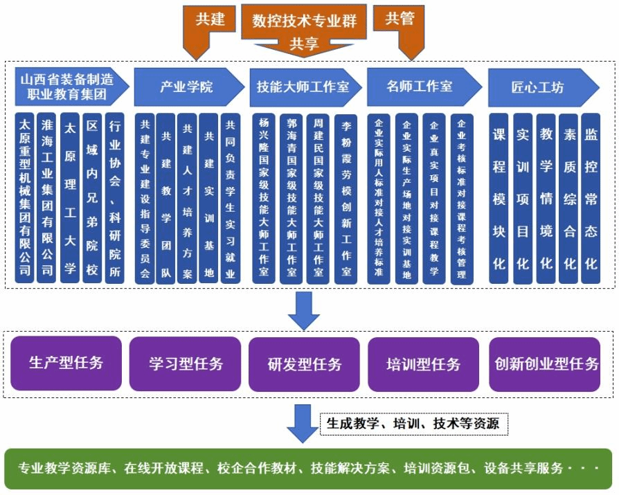 1.机制创新:建立"政府主导、行业指导、企业参与、学校实施"四方协同机制,与长治市12个县区签订战略协议,牵头成立装备制造产业联盟,形成"人才共育、技术共研、基地共建、成果共享"合作模式。